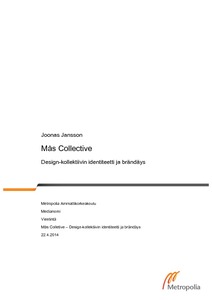 Kirjallinen osuus on prosessikuvaus projektista ja tehdyistä ratkaisuista. Tutkin, miten uusi tyhjästä aloittava design-kollektiivi voi identiteettisuunnittelun ja brändäyksen keinoin parantaa erottuvuuttaan ja saavuttaa tunnistettavuutta markkinoilla ja sitä kautta luoda jäsenilleen nimeä alalla.
