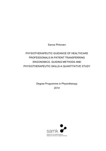 The purpose of this thesis was to research information of what is the role physiotherapists have in ergonomical guidance of healthcare professionals in patient transferring and in manual handling. The additional questions were that how physiotherapists are teaching ergonomics and what are their professional’s skills in patient transferring and in manual handling ergonomics.
