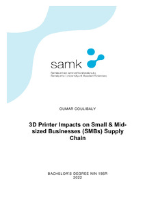 In this thesis, I aimed to describe the effects of the 3D Printer on small & mid-sized Businesses’(SMBs) supply chain management. Whereby, I conducted this primary research to illustrate the 3D Printer as a business idea, and then, to emphasize that usage of the 3D Printer in an organization’s supply chain can be beneficial in terms of avoiding disruption in the supply chain process. While global supply chain management is eased nowadays by the progress in technology trends moreover, the 3D Printer is used in the SMB’s supply chain for the aspects of qualitative results such as a good quality of the products, the less cost of production, reduction of delay, and sustainability. Therefore, my approach has been to describe the 3D Printer driving change in small & mid-sized business supply chain processes. Meanwhile, the global supply chain is constantly confronted with multiple disruptive risks, whereby, the 3D Printer implementation can impact positively SMBs supply chain management. Furthermore, the 3D Printer makes shorter the SMB’s supply chain processes line beneficially, which will impact the Leadtime and increases the organization’s competitiveness, meanwhile, all remains the customer’s satisfaction. Therefore, to illustrate in this paper the 3D Printer as a business idea, I proceed to describe the SMBs’ supply chain, and the 3D Printer machine, it then describes to the readers, the effects of the 3D Printer on SMBs’ supply chain processes.