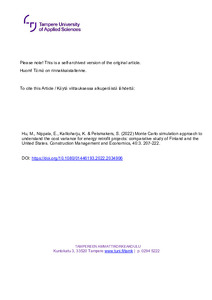 Monte Carlo simulation approach to understand the cost variance for energy retrofit projects: comparative study of Finland and the United States