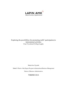 Exploring the possibilities fro promoting staffs' participation in international activities : Case: Vocational College Lappia