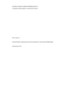 Opinnäytetyössä tutkitaan päivittäistavarakaupan etävaraston vastaanoton toimintaa. Toimeksiantaja toimii tutkimuksen kohteena olevan toimipisteen operaattorina. Opinnäytetyön tarkoituksena oli muodostaa selkeä kuva vastaanottoprosessista ja tutkia toiminnan laatua, työkuorman jakautumista ja tehokkuutta sekä ehdottaa muutoksia toiminnan kehittämiseksi.