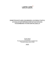 Opinnäytetyön aiheena oli Pohjois-Pohjanmaan hyvinvointialueen diabeteshoitajien osaamisen ja koulutus- ja konsultaatiotarpeen kartoitus. Toimeksiantajana oli Oulun yliopistollinen sairaala, joka vastaa diabeteksen hoidon toteuttamisesta tulevalla hyvinvointialueella.