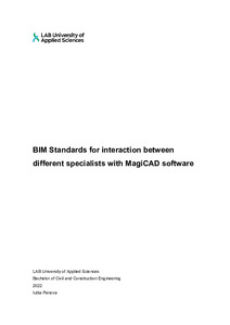 Explains concepts such as Model View Definition, Use Case Management, Information Delivery Manual, Exchange requirements, BIM Collaboration Format. Also, the Provision for Builderswork workflow is displayed in Appendix 1. This thesis increases the knowledge of MagiCAD users about BIM standards and how these standards are connected with MagiCAD Software.