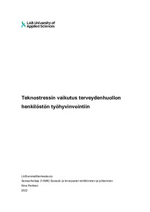 Terveydenhuollon ala on digitalisoitunut viimeisten vuosikymmenten aikana nopeasti. Tässä opinnäytetyössä pyrittiin selvittämään kirjallisuuskatsauksen keinoin teknostressin ilmenemistä ja vaikutuksia terveydenhuollon henkilöstön työhyvinvointiin.