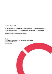 Management information system and operational performance of tertiary institutions in Nigeria : A study of Lead City University, Nigeria