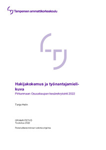 Tämä opinnäytetyö käsittelee kesätyöntekijöiden rekrytointia ja sen varsinaisena aiheena on hakijakokemus ja työnantajamielikuva. Opinnäytetyön toimeksiantajana on Pirkanmaan Osuuskauppa. Työn tavoite oli kerätä palautetta kesärekrytointiin osallistuvilta hakijoilta ja sitä kautta selvittää hakijakokemuksen onnistumista. Samalla tutkittiin, millainen työnantajamielikuva hakijoilla on Pirkanmaan Osuuskaupasta.