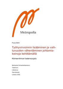 Työhyvinvoinnin lisääminen ja vaihtuvuuden vähentäminen johtamiskeinoja kehittämällä : Hämeenlinnan lastensuojelu