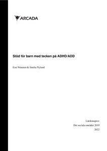 Syftet med detta arbete är att sammanställa och tillgängliggöra information kring ADHD/ADD hos barn då professionella kan ha svårt att hitta den. Forskningsfrågorna har uppkommit på basen av bakgrundsinformationen och tidigare genomförd forskning. Den huvudsakliga metoden är en produktutveckling. Materialet vi samlat in innehåller bland annat information kring definitionen på ADHD/ADD och dess symtom. Och även information kring stödmedel för professionella inom småbarnspedagogiken. Resultatet av detta arbete är en affisch som kan användas som en kostnadsfri resurs för professionella som jobbar med barn som visar tecken på ADHD/ADD.