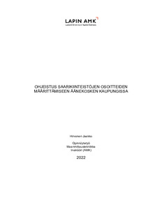 Tämän opinnäytetyön tavoitteena on luoda ohjeistus saarikiinteistöjen osoitteiden määrittämiseen Äänekosken kaupungissa. Idea opinnäytetyöhön on lähtenyt opinnäytetyön toimeksiantajalta, eli Äänekosken kaupungilta. Opinnäytetyön lopputuloksena syntyi ohjeistus saarikiinteistöjen osoitteiden määrittämiseen Äänekosken kaupungin alueella.