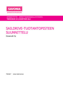 Tämän opinnäytetyön aiheena oli suunnitella uusi Saildrive-tuotantopiste Oceanvolt Oy:lle yrityksen uusiin toimitiloihin, lean-työkaluja apuna käyttäen. Työssä paneudutaan työpisteen kehittämisen teoriaan ja lean-työkaluihin, joiden avulla pyrittiin luomaan uusi viihtyisämpi, siistimpi ja tehokkaampi tuotantopiste.
