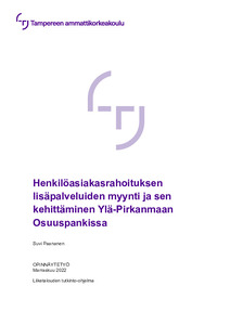 Tämän opinnäytetyön tavoitteena oli esittää toimeksiantajalle, Ylä-Pirkanmaan Osuuspankille, kehitysehdotuksia, miten henkilöasiakasrahoituksen lisäpalveluiden myyntiä voisi kehittää. Työn tekijä työskentelee henkilöasiakasrahoitustiimissä, ja aihe valikoitui tarpeesta, sillä pankkityö on myyntityötä, jota täytyy jatkuvasti kehittää.