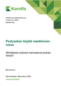 Tämän opinnäytetyön tarkoitus oli tutkia ja havainnoida, minkälaista markkinointia podcasteissa toteutetaan, sekä tuoda ilmi, minkälaiset yritykset mainostavat podcasteissa.