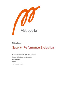 This thesis deals with the development of a supplier performance evaluation tool for the case organization. It was important to address the topic of supplier evaluation in the case company as the company's purchasing performance is significantly influenced by supplier performance. It is believed that proper supplier management can create a competitive advantage in the market.