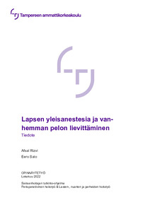 Opinnäytetyö käsittelee vanhemman kokemaa pelkoa, kun lapsi käy läpi toimenpiteen, joka vaatii nukuttamista. Opinnäytetyössä esitetään syitä lapsen kokemille tunteille ja reaktioille sekä tarjotaan keinoja vanhemmalle käsitellä tunteitaan ja auttaa lasta selviytymään nukuttamisen synnyttämästä pelosta mahdollisimman hyvin. Opinnäytetyö toteutettiin Tampereen Ammattikorkeakoululle. Keskeisiä käsitteitä ovat vanhemman pelko ja sen lievittäminen ja lapsen yleisanestesia. Opinnäytetyötä ja sen tuotosta voidaan käyttää potilasohjauksessa tai opetusmateriaalina tuleville sairaanhoitajaopiskelijoille.