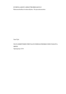 Tässä opinnäytetyössä tarkasteltiin erilaisia vaihtoehtoja pientalon energiatehokkuuden parantamiseksi. Tavoitteena oli löytää vaihtoehtoisia ratkaisuja Kotkassa sijaitsevalle omakotitalolle energiatehokkuuden parantamiseksi ja arvioida ratkaisujen taloudellista kannattavuutta.