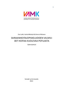 Tämän opinnäytetyön tarkoituksena oli kuvailla Vaasan ammattikorkeakoulun sairaanhoitajaopiskelijoiden valmiuksia hoitaa kuolevaa potilasta osa-alueilla, joita olivat psyykkisten ja fyysisten oireiden hoito, vuorovaikutus osaaminen ja hengellinen tukeminen. Lisäksi työn tarkoituksena oli avointa kysymystä käyttäen saada sairaanhoitajaopiskelijoilta kehitysideoita heidän valmiuksiensa edelleen lisäämiseksi koulutuksen avulla.