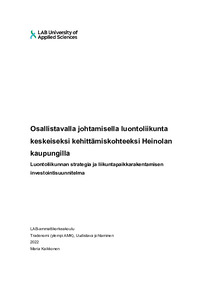 Prosessin tuloksena luotiin Heinolan luontoliikuntastrategia ja liikuntapaikkarakentamisen kehittämissuunnitelma vuosille 2022-2027. Strategiassa keskeiset keinot ovat olosuhteet, ekosysteemi ja tuotteistaminen. Luontoliikuntastrategiaan on nostettu neljä teemaa kehittämisen kärjiksi. Liikuntapaikkarakentamisesta luotiin investointisuunnitelmataulukko, joka ohjaa tulevien vuosien investointeja. Nature and sports have a significant effect on person's physical and psychological well-being. Heinola can offer good opportunities for outdoor activities, bring increased well-being for the municipality's residents and as a tourist destination. The main research question for this thesis is to find out how Heinola's nature sport services and sport facilities should be developed.