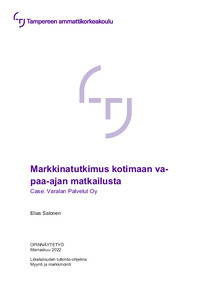 Tämän opinnäytetyön tavoite oli tuottaa hyödyllistä tietoa kotimaan matkailijoista, jota pystyttäisiin käyttämään matkailupalvelutuotteiden kehittämiseen. Työn tarkoitus oli selvittää markkinatutkimuksen keinoin, miten kotimaassa vapaa-ajan matkustetaan vuonna 2022. Työn toimeksiantaja oli Varalan Palvelut Oy. Työn teoreettinen viitekehys muodostui matkailun ja matkailumarkkinoinnin ympärille.