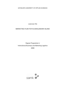 Marketing palan for Kuuskajaskari Island. ‡b Kuuskajaskari Island owned by the town of Rauma. Marketing plan should help the entrepreneurs of the islands to create services that target groups want and promote them by using the efficient marketing mix. The theoretical part consists of nature of tourism industry, travel consumers in general, then focus on Rauma areas and its island as targeted destination. Data was gathered from different official Finnish websites, books and from Sanni-Mari Aaltonen and Marija Kairyte's thesis: "Marketing plan for the islands owned by the town of Rauma: Kuuskajaskari, Kylmäpihlaja, Reksaari". The aim of this thesis is to clarify the stages of creating a marketing plan, to analyse current situation of business in Kuuskajaskari Island and island tourism in Finland by using marketing strategy and marketing mix, it also includes implementation and control. The empirical part was conducted by using a qualitative method. The interviews were done with a face-to-face, semi structured theme interview. The empirical part was done based on the results of these interviews with the entrepreneurs Katariina Saarinen of Kuuskajaskari islands, Sanni-Mari Aaltonen who has worked on the island, and tourist information officer of Rauma Jenna Ylipuranen. The interviews gave knowledge of the problem areas and competitiveness of entrepreneurs' business current activities in the frame of marketing strategy and marketing mix. The purpose of the plan is to develop services by determining the needs of targeted segments and gives ideas to improve marketing seven Ps in Finnish market. The theoretical knowledge and interviews with the key informants' guided formulation of the actual marketing plan, which also draw the finally conclusion and recommendations.
