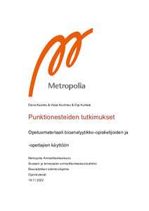 Punktionesteiden tutkiminen on tärkeä osa-alue laboratoriodiagnostiikkaa. Punktionesteiden analyysi on informatiivista infektiosairauksien, kasvainprosessien ja verenvuodon havaitsemisessa sekä niiden hoidon seurannassa. Punktionesteiden tutkiminen on olennainen osa-alue bioanalytiikan alalla. Perehtyminen punktionesteiden tutkimuksiin on tärkeää opintojen aikana tulevien bioanalyytikkojen asiantuntijuuden kartuttamisessa. Metropolia Ammattikorkeakoulu on tilannut opetusmateriaalin punktionesteistä bioanalyytikko-opiskelijoiden ja –opettajien käyttöön.