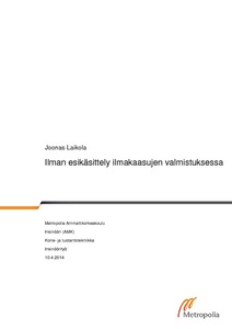 Pääraaka-aine ilmakaasujen tuotannossa on ilmakehästä saatava ilma. Ilman esikäsittelyllä tarkoitetaan ilman puhdistamista prosessille haitallisista ainesosista. Aluksi työssä kerrotaan ilmakaasuista ja tutustutaan ilman eri ominaisuuksiin, sekä sen sisältämiin epäpuhtauksiin. Tämän jälkeen kerrotaan esikäsittelyprosessin eri vaiheista tarkemmin. Esikäsittely on jaettu eri osiin, joita ovat ilman komprimointi, jäähdytys ja kuivaus.