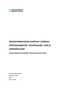 Opinnäytetyön tavoitteena oli tutkia assistenttipalveluita tarjoavan yrityksen toimintaympäristöä, velvollisuuksia, mahdollisuuksia ja uhkia sekä laatia liiketoimintasuunnitelma työntekijän omaan tarpeeseen.