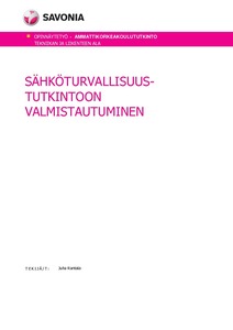 Tämän opinnäytetyön aiheena oli sähköturvallisuustutkintoon valmistautuminen. Työn tavoitteena oli laatia Savonia-ammattikorkeakoululle materiaali sähköturvallisuustutkintoon valmistautumisen tueksi. Lisäksi opiskelijoita avustettiin materiaalin hankinnassa ja kokeeseen harjoittelussa.