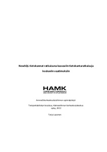 Opinnäytetyön aiheena on NewSQL-tietokannat ja se, miten näiden uudenlaisten tietokantojen avulla vastataan kasvaviin tietokantaratkaisuja koskeviin vaatimuksiin. Opinnäytetyöllä ei ole toimeksiantajaa, vaan aihe on valikoitunut puhtaasti tekijän oman kiinnostuksen pohjalta. Aihe on ajankohtainen, koska tietokannat ovat niin vahvasti läsnä nykyihmisen elämässä.