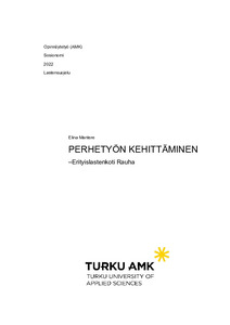 Opinnäytetyön tavoite on kuvata Erityislastenkoti Rauhan perhetyön kehittämisprosessia. Opinnäytetyö on luonteeltaan kehittämispainotteinen työ. Sen tarkoituksena on kuvata Erityislastenkoti Rauhassa tehtävää sijaishuollon perhetyötä. Käsittelen työssäni eri aihesisältöjä, jotka vaikuttavat perheen toimivuuteen ja perhesuhteisiin. Osa työotteista ja menetelmistä on jo käytössä olevia ja osa niitä, joiden on ajateltu tukevan Rauhan asiakkaiden tarpeita. Valinnoissa olen pyrkinyt huomioimaan myös työntekijöiden eri työ- ja koulutustaustoja. Tämän vuoksi aiheita on käsitelty laajasti mutta tiivistetysti. Tavoitteena on inspiroida työntekijöitä ottamaan menetelmiä käyttöön. Olen pyrkinyt kehittämistyön aikana tuomaan esille myös konkreettisia toimintaehdotuksia eri tilanteisiin. Laadullisen tutkimusotteen menetelmin on pyritty selvittämään kehittämisen tarvetta ja kohdetta. Käytettyjä tutkimusmenetelmiä ovat olleet haastattelut ja kysely yksikön työntekijöille.