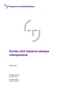 Opinnäytetyössä pohdittiin ja tutkittiin, kuinka värejä voidaan hyödyntää videopelien kehityksessä ja kuinka värit vaikuttavat pelaajaan. Työssä kerrottiin useiden esimerkkien avulla, kuinka eri tavalla värit vaikuttavat pelaajien päätöksen tekoon, ja miksi juuri valitut värit toimivat halutulla tavalla.