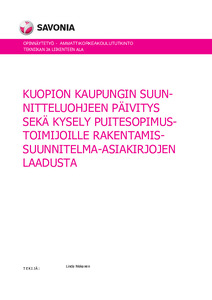 Kuopion kaupungin suunnitteluohjeen päivitys sekä kysely puitesopimustoimijoille rakentamissuunnitelma-asiakirjojen laadusta