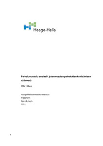 Opinnäytetyössä on esitelty sote-alan palveluiden kehittämisen suuntalinjoja, asiakaskeskeisyyttä ja koronan vaikutuksia alan palvelumuotoilu. Työssä esitellään palvelumuotoilun menetelmiä ja tavoitteita, joiden kautta korostuvat palvelumuotoilun vuorovaikutuksellisuus, yhteistyönä tekeminen, iteratiivisuus ja luovuus.