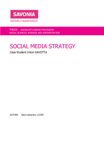The objective of this thesis project was firstly to broaden the writer's knowledge about social media marketing and, secondly, to implement a social media strategy for The Student Union of Savonia University of Applied Sciences, also known as SAVOTTA.
