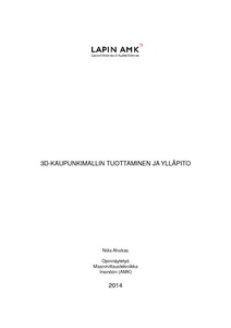 Tämän opinnäytetyön tavoitteena oli etsiä ratkaisuja Rovaniemen kaupungin haasteisiin 3D-kaupunkimallin tuottamisessa ja ylläpidossa. Toinen tavoite oli perehtyä yleisellä tasolla 3D-kaupunkimallin tuottamiseen.