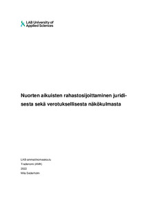 Opinnäytetyö käsittelee nuorten aikuisten rahastosijoittamista juridisesta ja verotuksellisesta näkökulmasta. Työn tavoitteena oli selvittää juridiset ja verotukselliset rajoitteet sekä mahdollisuudet nuorten aikuisten rahastosijoittamiselle. Tavoitteena oli löytää keskeisimmät seikat mitä aloittelevan rahastosijoittajan kannattaa ottaa huomioon, sekä antaa hyvä yleiskäsitys rahoitusmarkkinoiden toiminnasta.