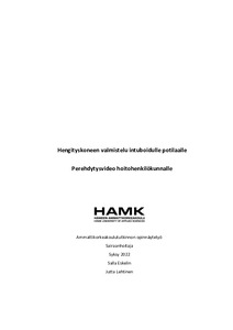 Opinnäytetyön tilaajana toimi Hyvinkään sairaalan tehovalvontaosasto. Tarkoituksena oli luoda perehdytysvideo tehovalvontaosaston hoitohenkilökunnalle sekä sairaanhoitajaopiskelijoille hengityskoneen valmistelusta intuboitua potilasta varten. Tavoitteena oli lisätä tehovalvontaosaston uusien sairaanhoitajien varmuutta ja osaamista hengityskoneen valmistelussa. Hengityskoneen oikeaoppinen valmistelu on tärkeä osa potilasturvallisuutta. Opinnäytetyön aihe oli tilaajalta saatu aihe-ehdotus.