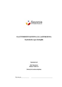 Opinnäytetyö tehtiin osana Pohjois-Savon Syöpäyhdistyksen Silta-projektia. Opinnäytetyön tarkoituksena oli tehdä opas saattohoidon parissa, niin kotona kuin laitoksessa, Pohjois-Savon alueella työskenteleville hoitajille. Tavoitteena oli luoda opas, joka toimisi työvälineenä saattohoidossa. Oppaan tarkoituksena on antaa hoitajille yhtenäiset, selkeät ja riittävät ohjeet saattohoitopotilaan hyvään hoitoon. Pohjois-Savon alueella ei ole aikaisemmin ollut käytössä yhtenäisiä ohjeita.