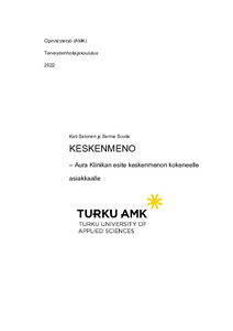 Tämän toiminnallisen opinnäytetyön toimeksiantajana toimii Aura Klinikka ja työn tarkoituksena on luoda matalankynnyksen esite keskenmenon kokeneelle asiakkaalle. Opinnäytetyön tavoitteena on lisätä tietoisuutta keskenmenosta ja siihen liittyvästä tuen tarpeesta ja tarjota tukea ja tietoa Aura Klinikan tarjoamasta tuesta.
