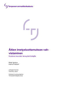 Opinnäytetyön tarkoituksena oli tuottaa koulutusmateriaali sekä järjestää koulutustilaisuus äitiys- ja lastenneuvoloiden terveydenhoitajille äitien imetysluottamuksen vahvistamisesta. Tavoitteena oli lisätä neuvolan terveydenhoitajien osaamista aiheesta ja parantaa imetysohjauksen laatua. Opinnäytetyö vastaa kysymyksiin siitä, mitkä tekijät vaikuttavat äidin imetysluottamuksen kehittymiseen ja miten terveydenhoitaja voi vahvistaa äidin imetysluottamusta. Työ tehtiin yhteistyössä Tampereen kaupungin äitiys- ja lastenneuvoloiden kanssa. Opinnäytetyö toteutettiin toiminnallisella menetelmällä.