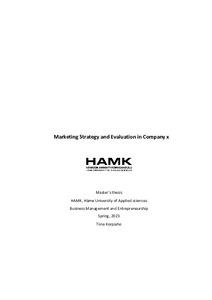 Tässä opinnäytetyössä asiakas sanaa käytettäessä puhutaan kuluttajasta. Toimeksiantajayrityksellä on asiakkaita, jotka ovat pääsääntöisesti vähittäiskauppoja, mutta tässä tapauksessa puhutaan kuluttajasta, joka on tuotteen loppukäyttäjä. Thesis subject marketing strategy and evaluation has been big part of my own job. Some of the work was already done inside my head before starting the process but because lack of time it was never finalized in written format. In small companies which are having low resources it quite often leads into a situation where strategy work gets too low attention because daily challenges and duties takes all the time. Yet strategy and understanding ultimate meaning of making business are too important to forget. If the company doesn’t know where it’s heading, who is buying their products and where does the money come from (and where doesn’t) it’s difficult to succeed.