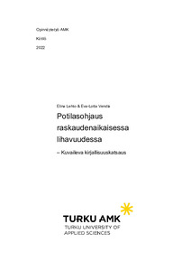 Opinnäytetyön tarkoituksena oli perehtyä raskaudenaikaiseen lihavuuteen sekä siihen liittyvään potilasohjaukseen ja koota siitä yhtenäinen aineisto kirjallisuuskatsauksen muodossa. Tarkoituksena oli myös tarkastella, mitä vaikutuksia raskaudenaikaisella lihavuudella on syntyvään lapseen ja hänen terveyteensä. Tavoitteena on lisätä tietoa ja ymmärrystä raskaudenaikaisesta lihavuudesta ja potilasohjauksesta osana raskaana olevan lihavan henkilön hoitoa. Tutkimuksen toimeksiantajana oli VSSHP Naistenklinikka.