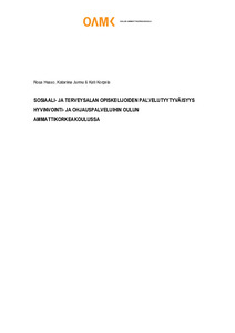 Tutkimustulokset osoittavat, että Oulun ammattikorkeakoulun sosiaali- ja terveysalan opiskelijat ovat enemmän tyytyväisiä kuin tyytymättömiä ohjaus- ja hyvinvointipalveluihin. Opiskelijoiden näkökulman esiintuomisen kautta mahdollistetaan heidän osallisuutensa hyvinvointi- ja ohjauspalveluiden tulevaisuuden kehittämisessä. The goal of University of Applied Sciences is to provide its students basic knowledge and skills to develop professionally and apply that knowledge later in their work. Universities of Applied Sciences Act states that every learning institution must arrange teaching and guidance for its students. In Oulu University of Applied Sciences student guidance services are part of student welfare services.