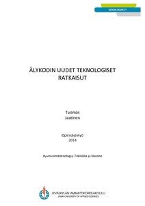 Opinnäytetyössä esitellään älykodin uusia teknologisia ratkaisuja. Aluksi luodaan katsaus älykodin menneisyyteen. Tämän jälkeen käsitellään älykotia käsitteenä ja yleisesti. Työssä käsitellään älykodin tekniikan käyttökohteet ja syyt. Opinnäytetyössä kerrotaan erilaisista käyttäjistä ja heidän tarpeistaan. Seuraavaksi esitellään uusia innovatiivisia teknologisia ratkaisuja jotka tällä hetkellä jo markkinoilla. Työssä kuvataan älykodin mahdollisuuksista tulevaisuudessa sekä sitä kohtaan nousevia uhkia ja pelkoja. Lopuksi pohditaan älykodin tulevaisuuden näkymiä.