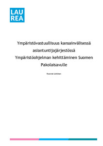 Opinnäytetyön tarkoituksena oli kehittää Suomen Pakolaisavun ympäristövastuullisuutta. Tavoitteena oli selvittää organisaation ympäristövastuullisuuden nykytila, miten eri toimintaympäristöt vaikuttavat ympäristövastuun toteuttamisessa ja minkälaisia sosiaalisia vaikutuksia ympäristövastuullisella työllä on Pakolaisavun ulkomaan kohderyhmälle. Kehittämistuotoksena laadittiin Suomen Pakolaisavulle koko organisaation kattava ympäristöohjelma.