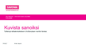 Opinnäytetyönaiheena on Kuvista sanoiksi –työkaluja ratkaisukeskeiseen lyhytterapiaan nuorten kanssa. Opinnäytetyössä yhdistyvät ratkaisukeskeisen lyhytterapian ja palvelumuotoilun työkalut. Tavoitteena oli suunnitella ratkaisukeskeiseen lyhytterapiaan työväline, jonka tarkoituksena on parantaa terapeutin ja asiakkaan välistä dialogia nuorten kanssa työskenneltäessä. Siten opinnäytetyö toimiikehittämistyönä, jossa on hyödynnetty ratkaisukeskeisen lyhytterapian ydintä ja itse palvelumuotoilua. Näissä molemmissa asiakas ja hänen näkemyksensä ovat aivan työskentelyn keskiössä. Opinnäytetyö rakentuu terapiatyövälineen kehittämisestä, kohderyhmälle tehdystä tutkimuksesta työvälineen hyödyllisyydestä, keinona ratkaisukeskeisen lyhytterapian dialogissa sekä valmiin produktion luomisesta. Opinnäytetyö on tehty tilaustyönä koulu-ja opiskeluterveydenhoitajana työskentelevän ja ratkaisukeskeisen lyhytterapiakoulutuksen käyneelle Satu Seppälälle. Työ toteutettiin projektiluontoisesti ja yhdessä tilaajan kanssa, hänen toiveitaan ja tarpeitaan kuunnellen ja niistä keskustellen. Työssä on hyödynnetty muotoilun tutkimuksen menetelmiä sekä tutkimustietoa terapiassa käytettävistä työkaluista, asioista puhumisen helpottumiseksi ja asiakkaan oivalluttamiseksi. Lisäksi työvälineen kehittämisessä huomioitiin kohderyhmälle tehtyä kyselyä suunniteltujen työvälineiden hyödyllisyydestä. Näiden tulosten pohjalta syntyi lopullinen produktio. Jatkosuunnitelmana ja kehittämisideana on tarkoitus tuotteistaa uudet työvälineet. Opinnäytetyön eettisyydessä kunnioitettiin kohderyhmää tekemällä kyselyt anonyymina ja siten säilyttämällä heidän yksityisyytensä. Opinnäytetyön luotettavuus pohjautuu kohderyhmälle tehdyn kyselyn ja lisäksi aiheesta tehtyjen, eri näkökulmiin perustuvien tutkimustulosten tarkastelusta. Opinnäytetyöllä etsittiin vastausta kysymykseen; millaisia työkaluja voidaan hyödyntää dialogissa nuorten kanssa ratkaisukeskeisessä lyhytterapiassa palvelumuotoilun keinoin? Opinnäytetyön tuloksena voidaan todeta, että produktiossa syntyneiden, visuaalisesti toteutettujen tunnekorttien avulla, nuori hyötyy omien, sen hetkisten tunteidensa sanoittamisessa.