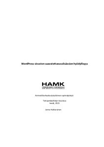 Työn teoriaosuudessa käsitellään saavutettavuutta verkkopalveluissa, miksi se on tärkeää ja kenelle siitä on hyötyä. Lisäksi käydään läpi saavutettavuuteen liittyvää lainsäädäntöä, WCAG-ohjeistusta sekä saavutettavuuden arviointia ja testausta. Työssä käsitellään lyhyesti myös WordPress-sisällönhallintajärjestelmää sekä tutkimuksessa käytettyjä saavutettavuuslisäosia. Opinnäytetyö on toiminallinen. Aineistoa kertyi saavutettavuusasiantuntijan haastattelusta sekä lisäosien vertailuun käytettyjen testaustyökalujen antamista tuloksista.