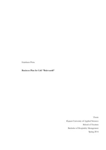 The thesis deals with business plan; what it consists of, what are the factors that make a good business plan. The thesis also deals with the law issues concerning establishing a new café. The thesis consists of actual planning of a café; décor, style and operational environment and assessment on biggest competitors.