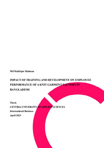 Nothing gets done without workers, not even machinery, materials or even money; human resource is the most important asset of any organization. A human being is dynamic; thus employee training and development are vital for maintaining workers on track with the current competitive environment. Employee performance is a key element and the base for improving an organization’s overall success. This thesis aims to examine the effects of training and development on employee performance in a knit garments factory in Bangladesh. The thesis aims to understand the perception of training and development among the employees of the company and the critical factor that influences their performance. For that, questionnaires were distributed among the company's one hundred employees, of which sixty-five responses were collected and analysed.