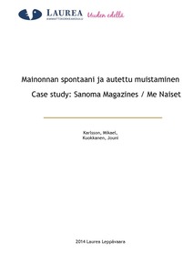 Digitalisoituva ympäristö on saanut painotalot tuomaan markkinoille yhä enemmän sähköisillä lukupäätteillä selattavaa materiaalia. Tämän opinnäytetyön tarkoituksena on pyrkiä selvittämään eroja printti- ja tablettilehtien mainonnan muistamista ja huomaamista Me Naiset esimerkkilehden kautta. Opinnäytetyön aiheen on antanut Sanoma Magazines oyj ja se suoritetaan toimeksiantona kyseiselle yritykselle. Vaikka lehden sisältö on molemmissa versioissa täysin samanlainen, on niiden selaustavassa eroja.
